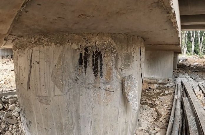 Steel and cement pilings that pierce through the roofs of limestone caves along a section of the Maya Train railroad have affected the quality of subterranean water and destroyed “archaeological and geological heritage,” experts say.