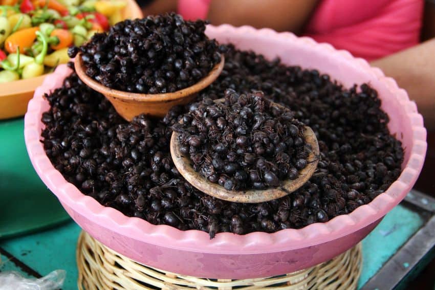 Another pre-Columbian meal, cuetlas — also known as chiancuetla and tepolchichic — are butterfly larvae. These larvae grow on a select few types of trees during the rainy season. They are eaten mainly in Puebla, but you’ll also find them in Guerrero and Veracruz. Their taste is delicious and similar to that of chapulines. Plus, they are rich in protein, iron and vitamin B.