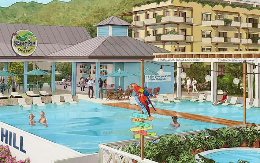 The project will open for sales this summer, with move-ins happening in the spring of 2024, according to the Margaritaville website. Pastel-hued renderings also give us some clues about how the company will recruit “Parrot Heads” to Lake Chapala. An updated artist’s rendition of the existing pool area features giant macaws, a “Salty Rim Bar & Grill” logo, and Jimmy Buffett-inspired slogans and affirmations scrawled on walls and awnings.