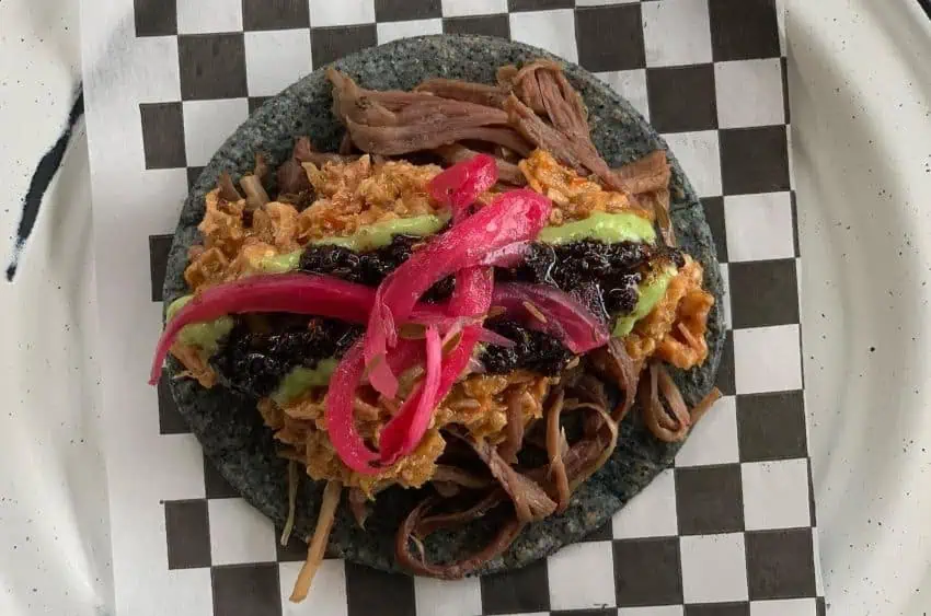 I first came to Abulón, Antojería del Mar on a walking food tour of Versalles. That was in 2021 and I haven’t stopped being a regular since. This open-air patio restaurant specializes in seafood with their own signature twist. I keep coming back for the shrimp tacos al pastor. Juicy, pastor-style shrimp are piled atop blue corn tortillas and sprinkled with chunks of pineapple and avocado cream. Their octopus tacos are also worth tasting.